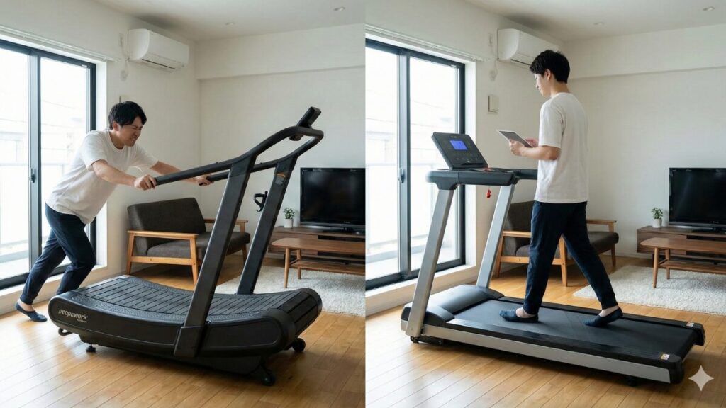「強制力」が習慣化を助けてくれる 自走式は疲れてくると無意識にペースが落ちてしまいますが、電動式はマシンがペースメーカーになってくれます。設定した速度に「ついていく」という適度な強制力があるおかげで、自分に甘くなることなく、目標の心拍数を維持した効率的な有酸素運動を淡々とこなせるんです。実は、この「受動的な運動」こそが、脳のリソースを奪わずに継続するための秘訣だったりします。
