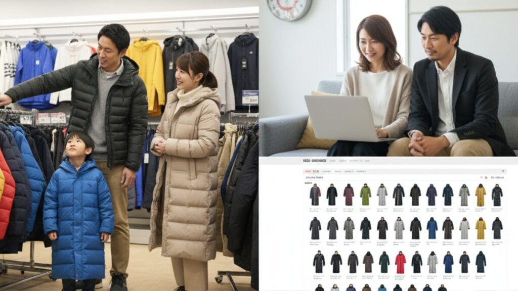• メリット: レビューや口コミで、購入者が実際に感じた暖かさやサイズ感を確認できるのが大きな強みです。「ダウン90%」「撥水加工」など、細かいスペックで絞り込み検索ができるのも便利です。