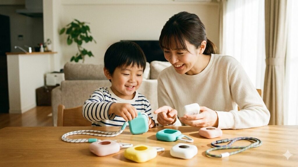 - 安全パーツ付きストラップ: 万が一どこかに引っかかった時にパッと外れるタイプなら、お子さんの首や体の安全を守れます。