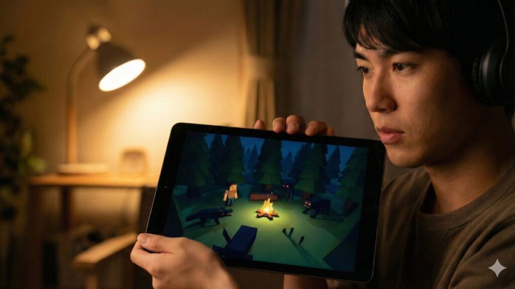 最近、YouTubeの実況動画やSNSで話題沸騰中のRoblox(ロブロック)内のゲーム、「99 Nights in the Forest(99日生き残る)」をご存知でしょうか? 不気味な森の中で拠点を築き、夜な夜な襲ってくる怪物やカルト教団から生き延びるサバイバルホラーですが、このゲーム、実は見た目以上にiPadの基礎体力を必要とします。