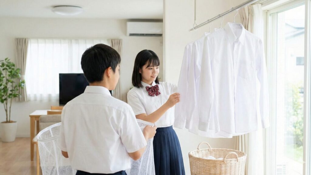 こんにちは。コレかも、運営者の「じむの」です。中学生のお子さんがいるご家庭にとって、毎日のワイシャツのアイロンがけは本当に悩ましい家事の一つですよね。私も実際に経験しましたが、部活でクタクタになって帰ってきた子供の制服を洗い、夜な夜な眠い目をこすりながらプレスするのは、正直かなりの負担でした。「もっと楽にできないものか……」と何度もため息をついたことを覚えています。最近ではネットの人気ランキングなどでも「完全ノーアイロン」を謳う商品が増えてきましたが、いざ選ぼうとすると、イオンやドンキなどの店舗で安いものを買うべきか、それとも楽天などの通販で高機能なものを選ぶべきか、迷ってしまうことも多いのではないでしょうか。特に成長期の男子や女子ならではのサイズ選び、透けない機能、気になる襟の黄ばみ対策など、チェックすべきポイントは意外とたくさんあります。この記事では、そんな日々の家事負担を少しでも減らしたいと考えている親御さんに向けて、私の経験も交えながら最適な選び方をご紹介します。