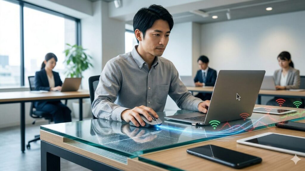 ワイヤレスマウスを使っていて一番イライラするのは、ポインターが飛んだり、一瞬接続が途切れたりすることですよね。ロジクールが他社を圧倒しているのは、この「目に見えない通信の安定性」です。特にビジネス向けの最新規格「Logi Bolt」は、Bluetooth Low Energyをベースにしつつ、連邦情報処理標準(FIPS)に準拠した強固なセキュリティモードを搭載しています。これにより、電波が飛び交う混雑したオフィスでも、まるで有線のような安定感で操作が可能です。
