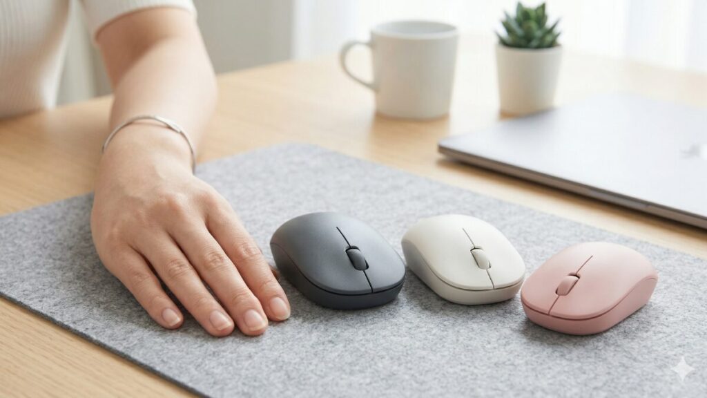 手が小さい方のマウス選びのポイントは、「高さ(背の低さ)」にも注目することです。背が高いマウスは手が浮いてしまいがちですが、背が低いモデルなら手首を自然な角度でデスクに置いたまま操作できるため、長時間の作業でも疲れにくくなりますよ。MX Anywhere 3SやPebble Mouse 2はその点でも非常に優秀です!