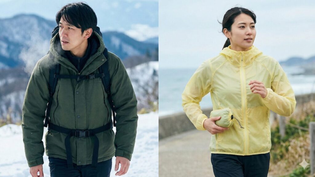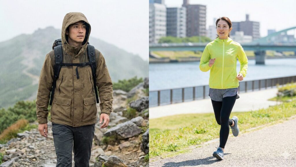 マウンテンパーカーとウインドブレーカーは、それぞれ異なる機能特性を持つため、得意とするシチュエーション、つまり主な用途が異なります。自分がどのような場面でアウターを使いたいかを具体的にイメージすることが、最適な一着を選ぶための重要なステップとなります。