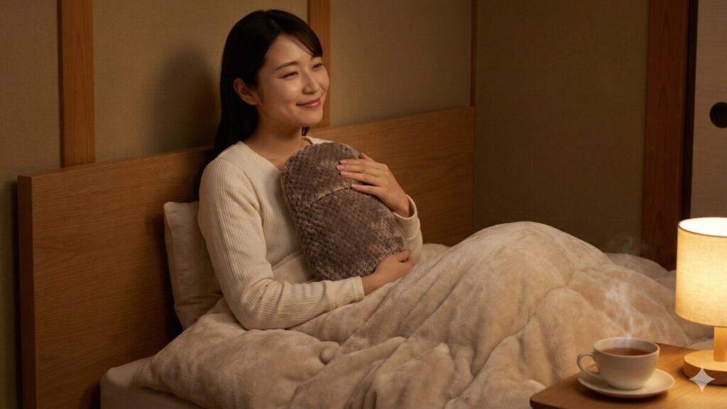 この「徐々に温度が下がる」という特性こそが、実は人間の生理的な睡眠メカニズムに非常に合っていると言われています。人は深部体温が下がる時に入眠しやすくなるため、最初はポカポカと温かく、眠りにつく頃には暑すぎない温度に落ち着いていく湯たんぽは、まさに快眠のための理想的なパートナーと言えるでしょう。