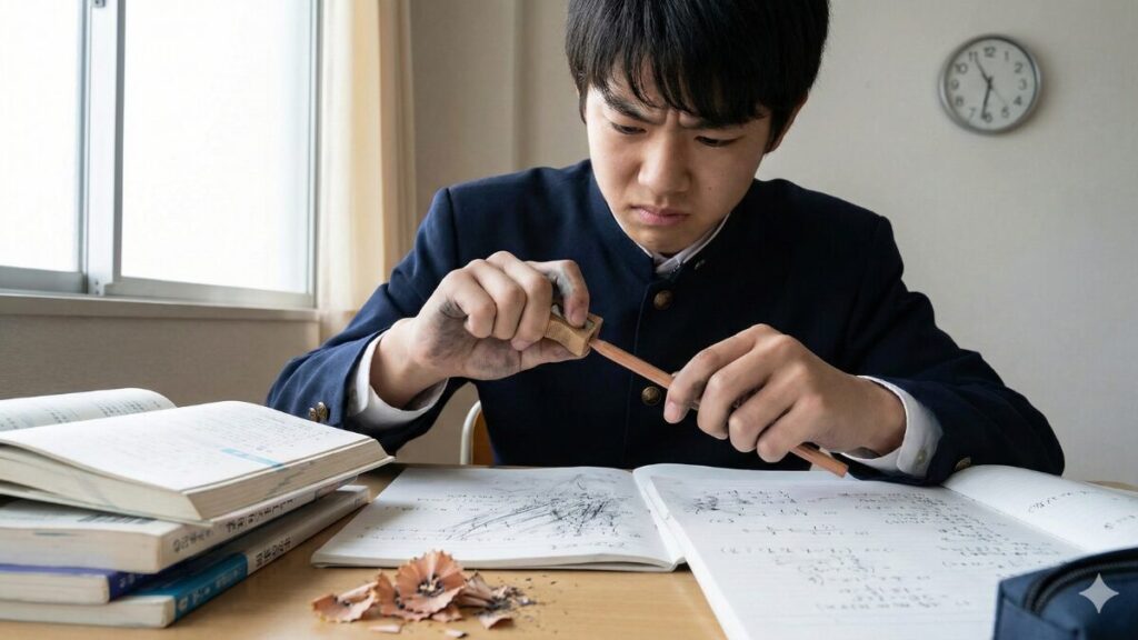 • メンテナンスの手間: 鉛筆は頻繁に削る必要があります。勉強が乗ってきた「フロー状態(超集中状態)」に入っているときに、「あ、丸くなったから削らなきゃ」と作業を中断するのは、集中力を切らす最大の原因です。シャープペンシルなら、カチッとノックするコンマ数秒で復帰できます。