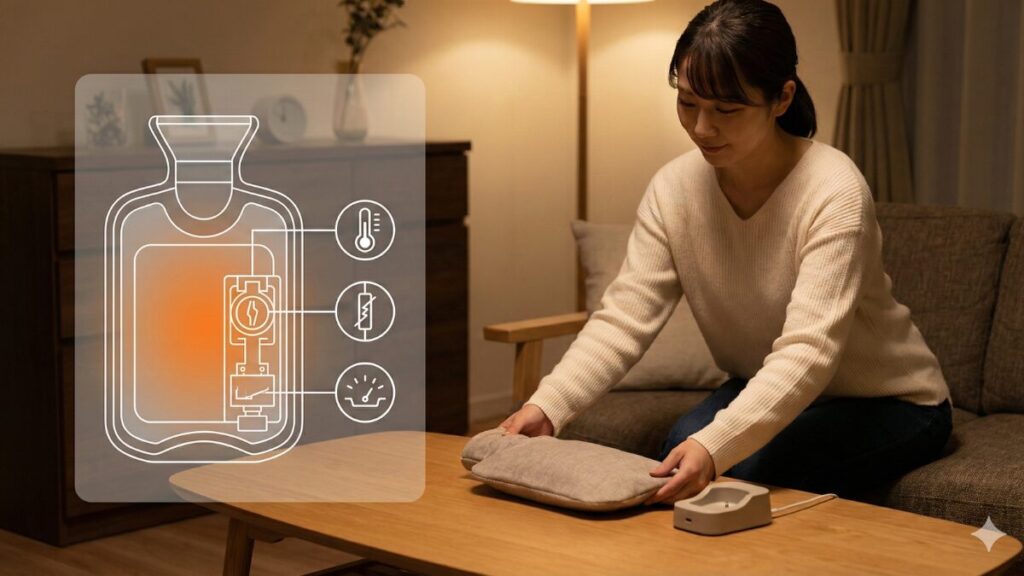 充電式湯たんぽを選ぶ際、最も重視すべきなのは「製造国」というラベルよりも、製品内部にどのような安全装置が組み込まれているかという点です。価格の安さだけで選んでしまった結果、数回の使用で壊れてしまったり、最悪の場合は就寝中に破裂してしまったりといった事故につながるケースも少なくありません。充電式湯たんぽは、内部の液体(主に水や塩化ナトリウム水溶液)を電気ヒーターで急激に加熱する仕組みですが、ここには制御不能になった際のリスクが常に潜んでいます。