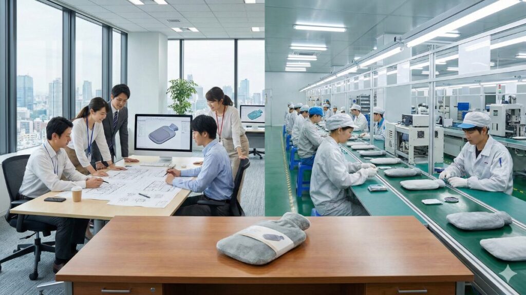 なぜこれほどまでに日本製が存在しないのでしょうか?それは、構造の違いに理由があります。昔ながらのお湯を入れる「注水式湯たんぽ」であれば、タンゲ化学工業のような国内メーカーが、現在も質の高い日本製プラスチック製品や金属製品を製造しています。しかし、充電式湯たんぽは「電気製品」です。ヒーター、制御基板、バッテリー、そして特殊な蓄熱液を組み合わせた工業製品であり、コスト競争力や部品調達のサプライチェーンの関係から、製造拠点の海外シフトが完了してしまっているのです。